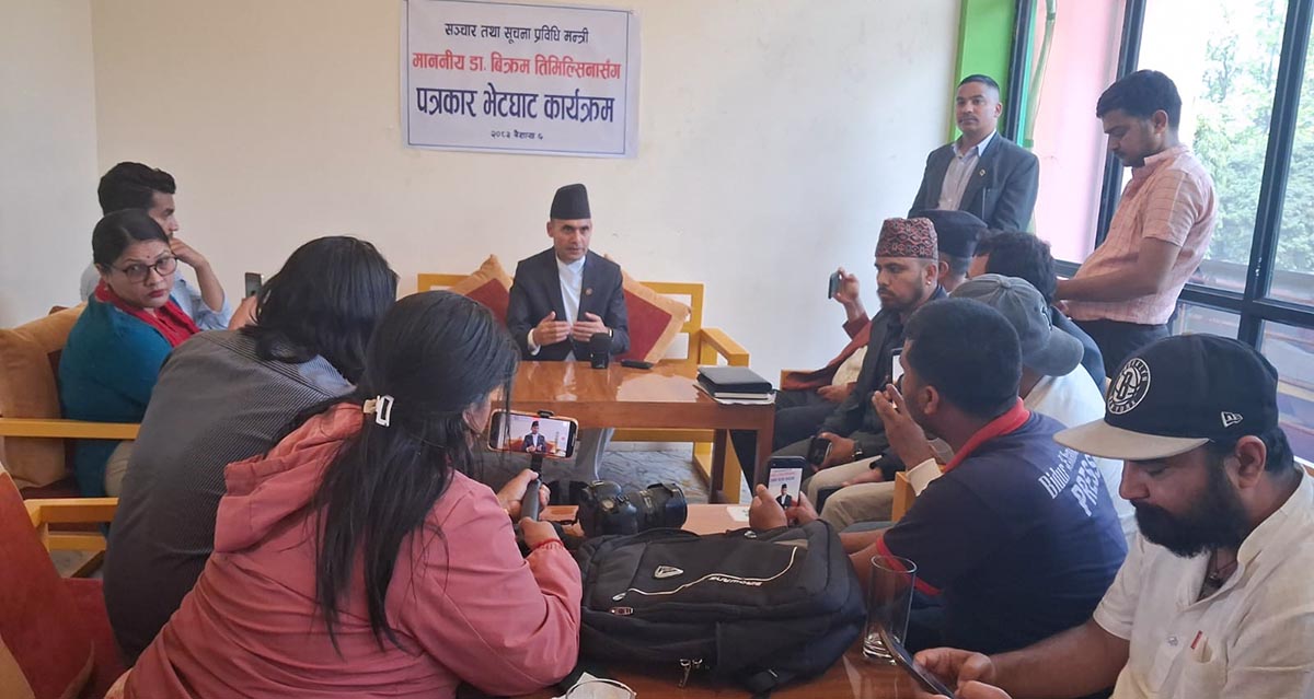 Speaking at a press meet held at Battar of Bidur Municipality, Nuwakot today, the Minister said that the media, one of the vital pillars of the state, is expected to act responsibly and exercise self-regulation. He called on media professionals to adhere to existing laws and code of conduct.